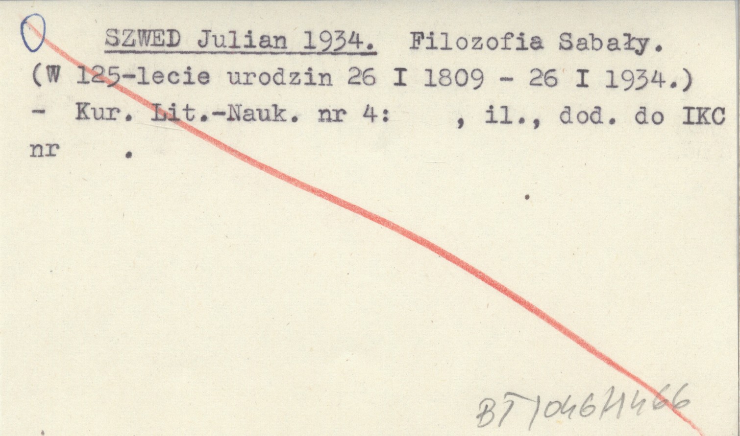 SZWED Julian 1934 Filozofia Sabały. (W 125-lecie urodzin 26 I 1809-26 I 1934).