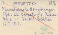 BREDETZKY 1811 Mineralogische Bemerkungen über die Carpatische Zipser Alpe.