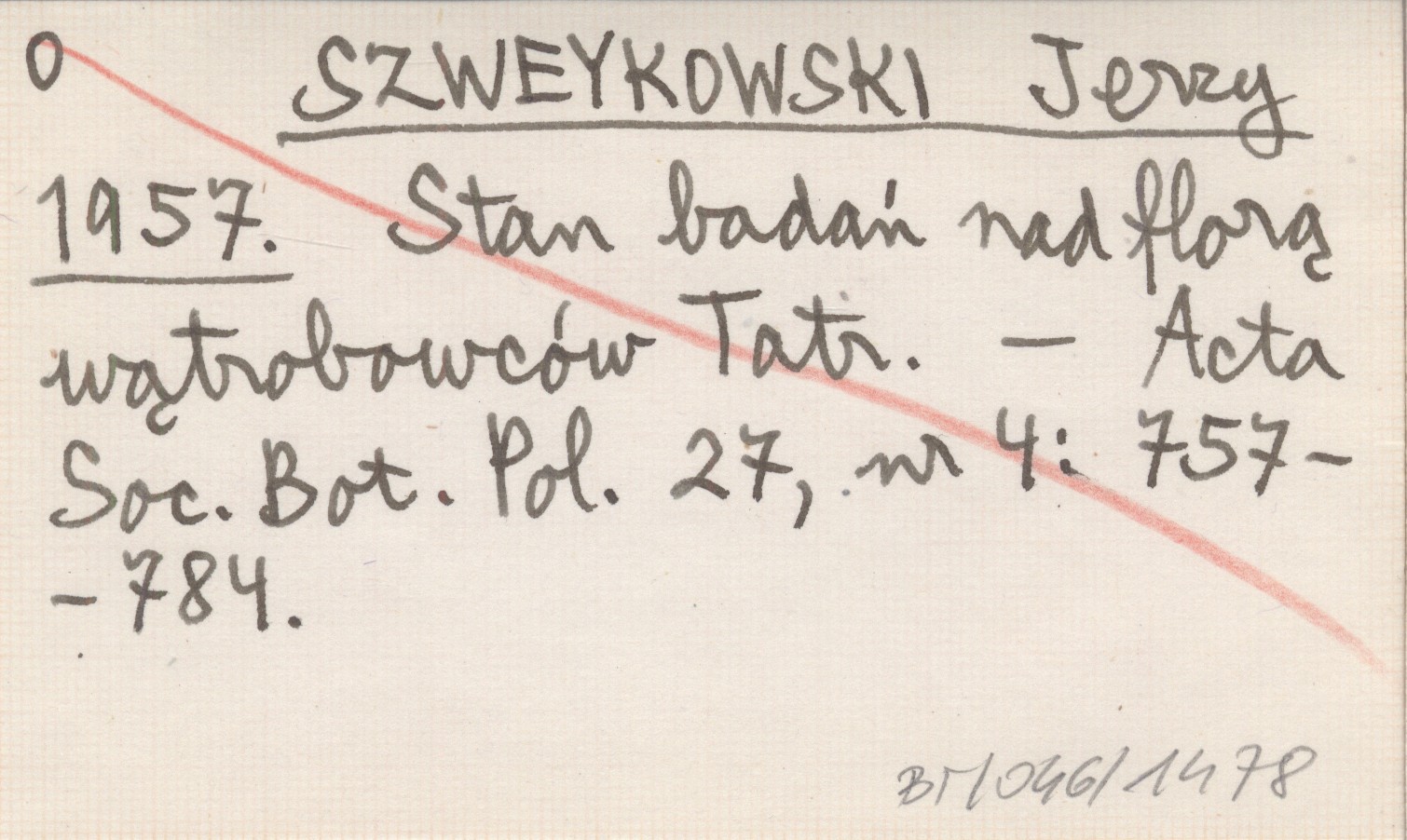 SZWEYKOWSKI Jerzy 1957 Stan badań nad florą wątrobowców Tatr.