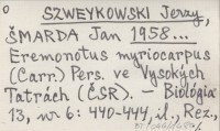SZWEYKOWSKI Jerzy ŠMARDA, Jan. ; 1958... Eremonotus myriocarpus (Carp.) Pears. ve Vysokých Tatrách (ČSR).