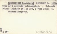 WOYNICKI Sz. [SZWOYNICKI Kazimierz] 1960 Wróg nr 1 przyrody tatrzańskiej.