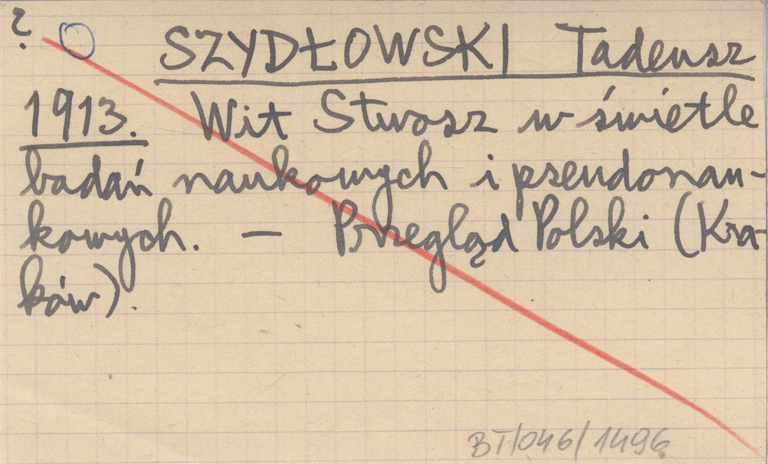 SZYDŁOWSKI Tadeusz 1913 Wit Stwosz w świetle badań naukowych i pseudonaukowych.
