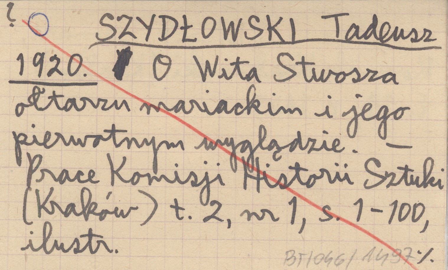 SZYDŁOWSKI Tadeusz 1920 O Wita Stwosza ołtarzu mariackim i jego pierwotnym wyglądzie.
