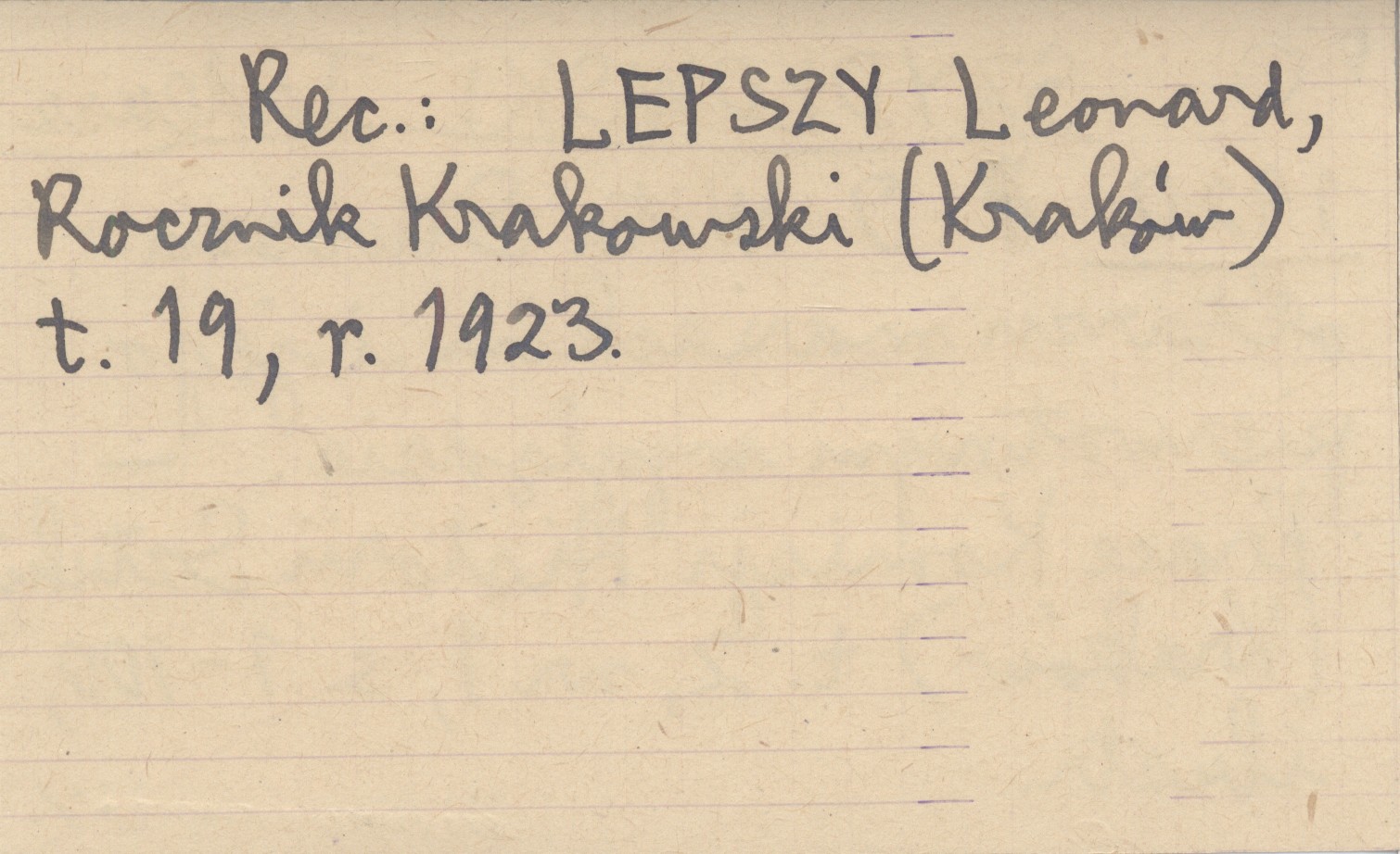 Prace Komisji Historii Sztuki Kraków, T. 2, nr 1: 1-100, il. REC: LEPSZY Leonard, Rocznik Krakowski (Kraków) t. 19 (1923)