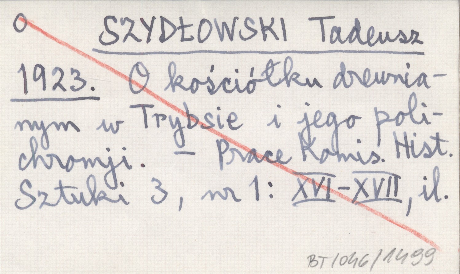 SZYDŁOWSKI Tadeusz 1923 O kościółku drewnianym w Trybsie i jego polichromji.