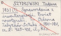 SZYDŁOWSKI Tadeusz 1931 (?) Sprawozdania z inwentaryzacji. Powiat nowotarski.