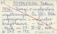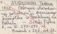 SZYDŁOWSKI Tadeusz 1932 Odkrycie starodawnej polichromji drewnianego kościółka w Harklowej na Podhalu. (Drewniane kościółki na szlaku turystycznym z Nowego Targu do Pienin. Odrestaurowanie kościoła w Harklowej i jego nowa polichromja. Resztki malowań pierwotnych z pocz. XVI w. Ich użytkowanie w wewnętrznym babińcu. Usunięcie dzwonnicy oszpecającej widok na kościół. Rozpoczęcie robót w Łopusznej).