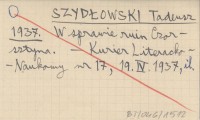 SZYDŁOWSKI Tadeusz 1937 W sprawie ruin Czorsztyna.