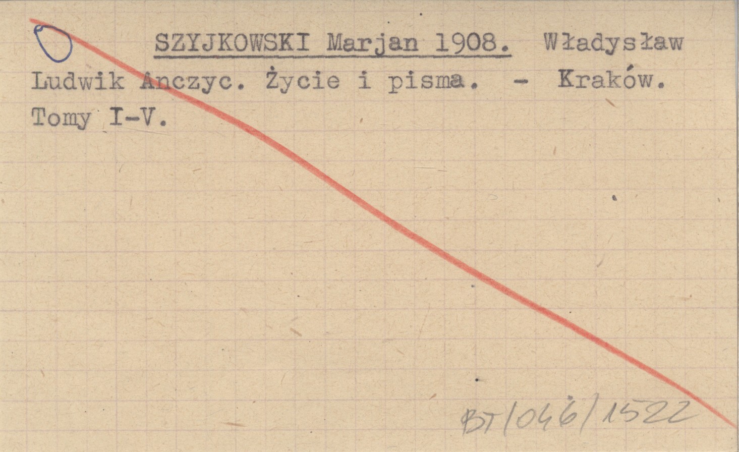 SZYJKOWSKI Marjan 1908 Władysław Ludwik Anczyc. Życie i pisma.