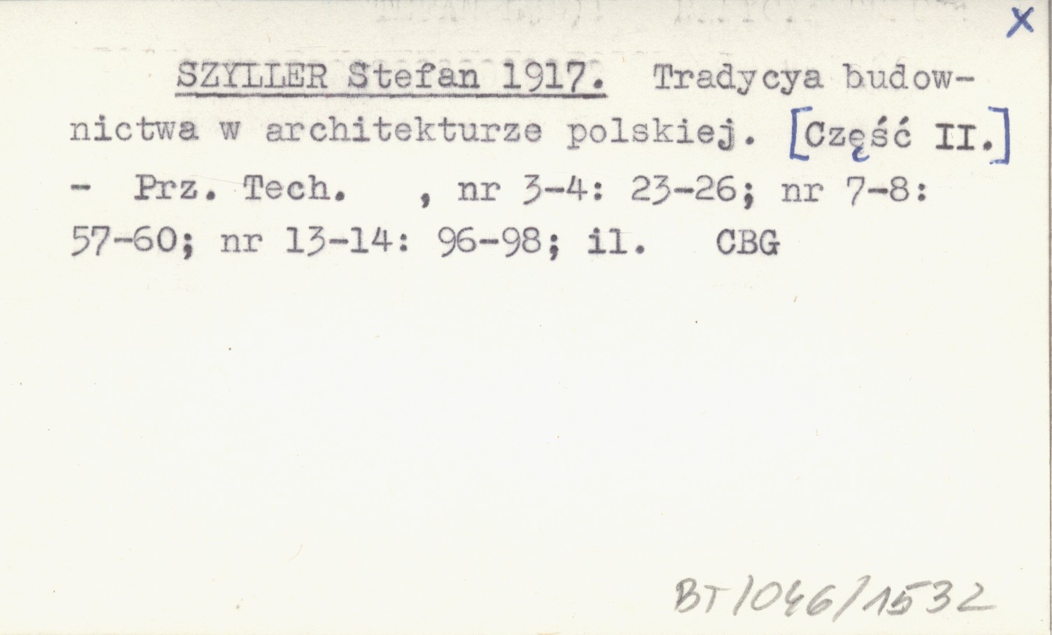 SZYLLER Stefan 1917 Tradycya budownictwa w architekturze polskiej. [Część II.]