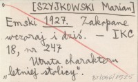 Emski [SZYJKOWSKI Marian] 1927 Zakopane wczoraj i dziś.
