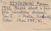 SZYJKOWSKI Marian 1931 Polská účast v českém národním obrození. Tom I.