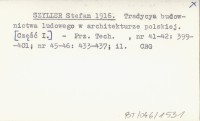 SZYLLER Stefan 1916 Tradycya budownictwa ludowego w architekturze polskiej. [Część I.]