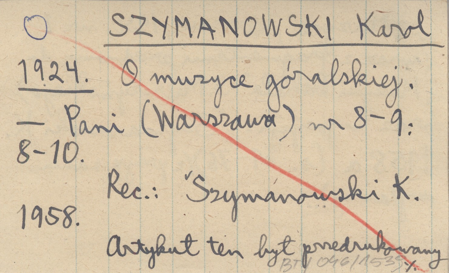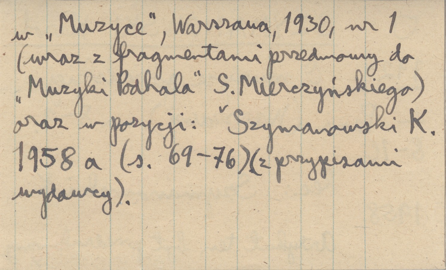 Pani (Warszawa) , Nr 8-9: 8-10. Artykuł ten był przedrukowany w "Muzyce" Warszawa 1930, nr 1 (wraz z fragmentami przedmowy do "Muzyki Podhala" S. Mierczyńskiego) oraz w pozycji: SZYMANOWSKI K. 1958 a (s. 69-76) (z przypisami wydawcy). REC: SZYMANOWSKI K. 1958