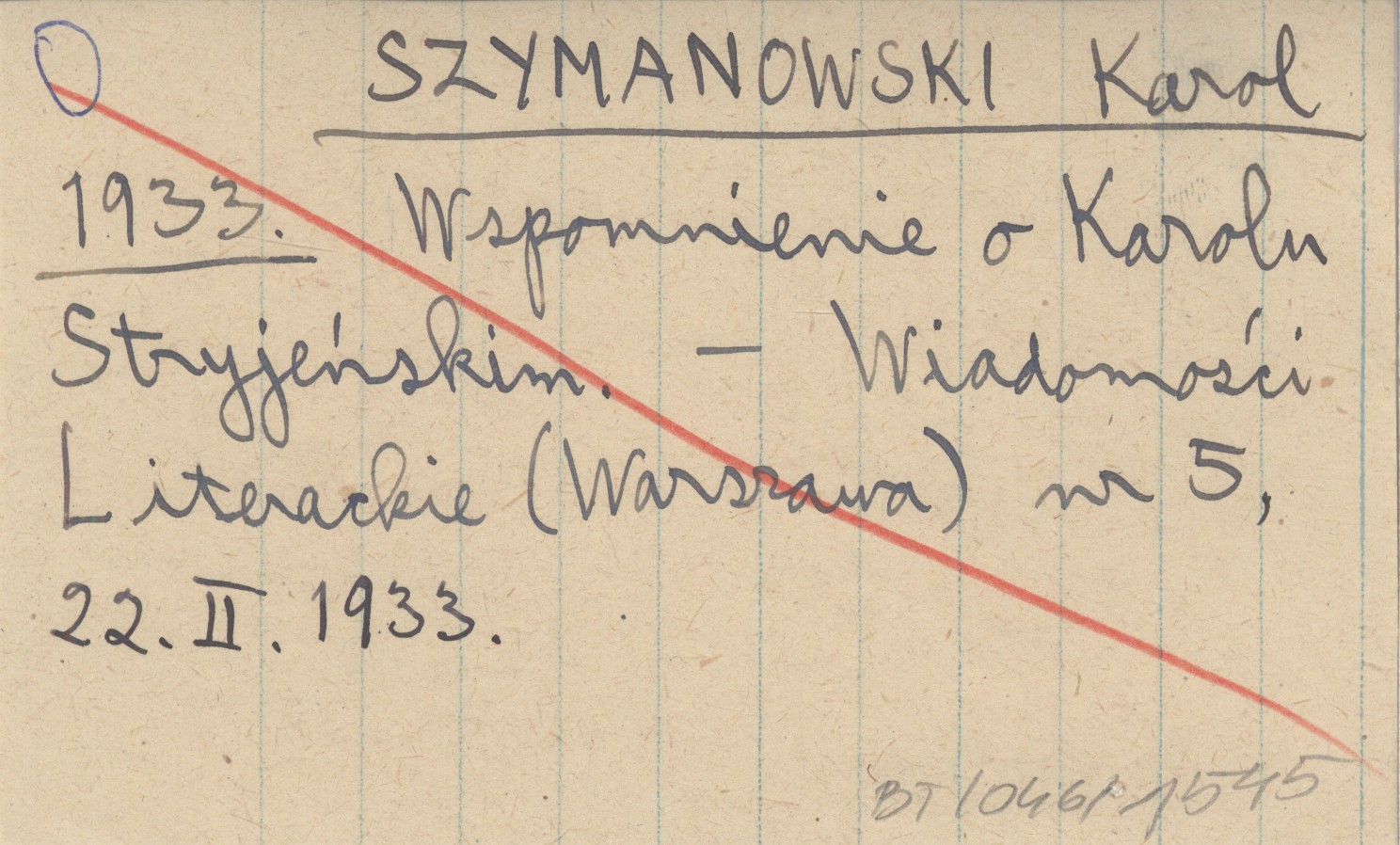 SZYMANOWSKI Karol 1933 Wspomnienie o Karolu Stryjeńskim.