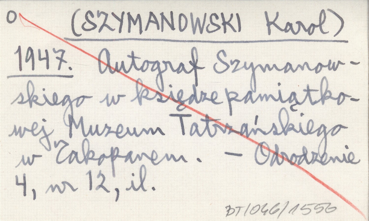 [SZYMANOWSKI Karol] 1947 Autograf Szymanowskiego w księdze pamiątkowej Muzeum Tatrzańskiego w Zakopanem.
