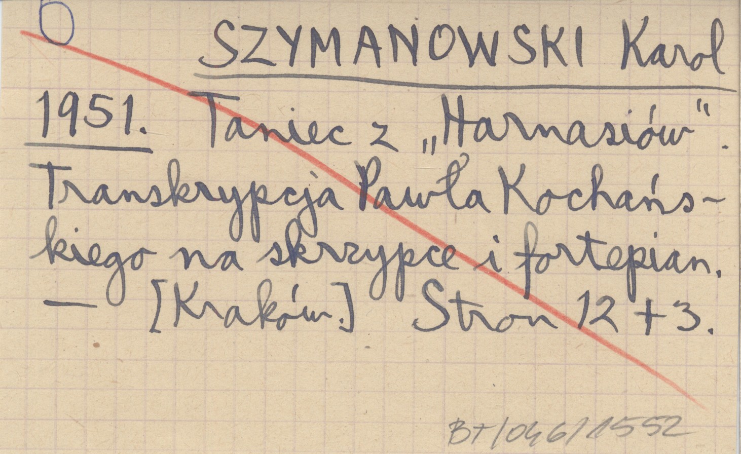 SZYMANOWSKI Karol 1951 Taniec z "Harnasiów". Transkrypcja Pawła Kochańskiego na skrzypce i fortepian.