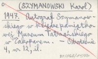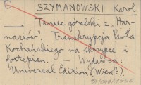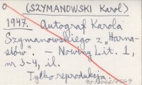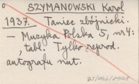 SZYMANOWSKI Karol 1958 a Z pism. Opracowała Teresa Bronowicz-Chylińska.