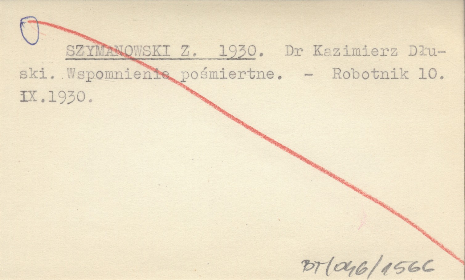 SZYMANOWSKI Z. 1930 Dr Kazimierz Dłuski. Wspomnienie pośmiertne.