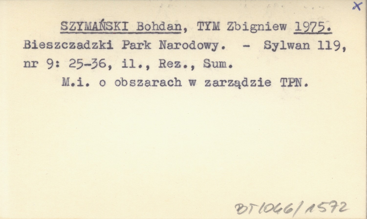 Sylwan, 119, nr 9: 25-36, il., Rez., Sum. M. in. o obszarach w zarządzie TPN.