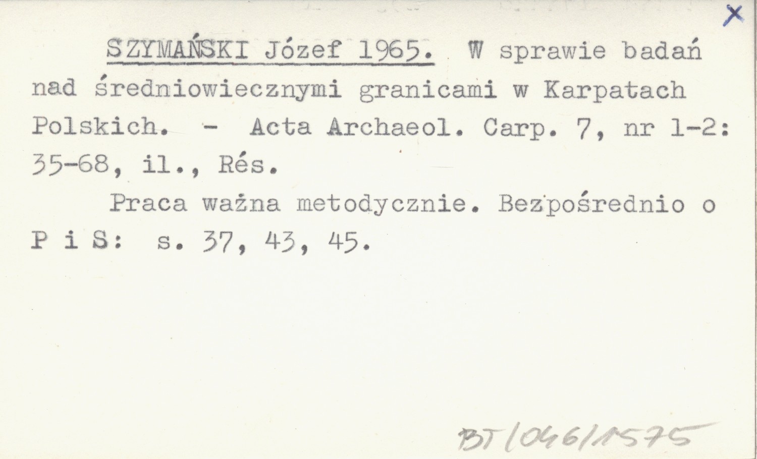 SZYMAŃSKI Józef 1965 W sprawie badań nad średniowiecznymi granicami w Karpatach Polskich.
