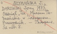 SZYMAŃSKA J. DAROWSKI, Jerzy. ; 1973 Oddział "Tea", Muzeum Tatrzańskie w Zakopanem. Przewodnik.