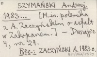 SZYMAŃSKI Andrzej 1983... [M. in. polemika z A. Zaczyńskim o asfalt w Zakopanem.]