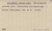 SZYMAŃSKI Bohdan 1965 Bibliografia osobowa prof. Stanisława Sokołowskiego.