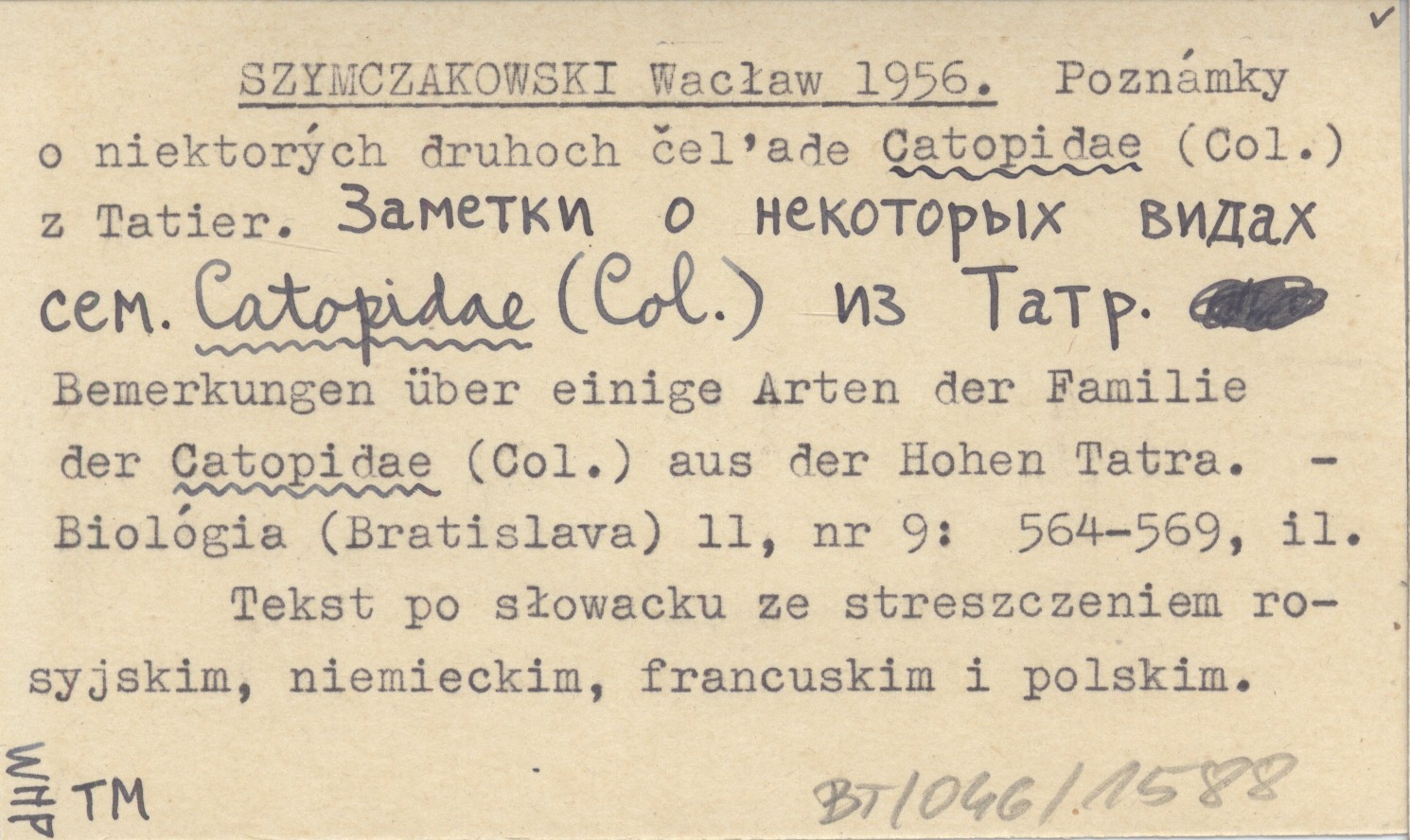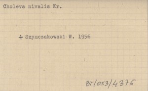 SZYMCZAKOWSKI Wacław 1956 Poznámky o niektorých druhoch čeľade Catopidae (Col.) z Tatier. Zametki o nekotorych vidach sem. Catopidae (Col.) iz Tatr. Bemerkungen über einige Arten der Familie der Catopidae (Col.) aus der Hohen Tatra.