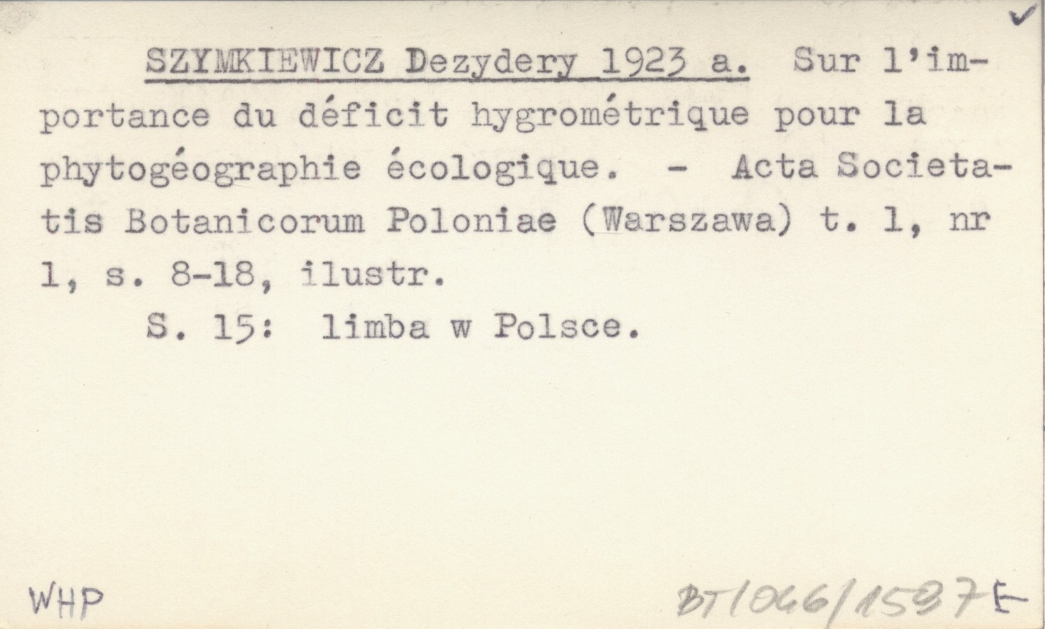 SZYMKIEWICZ Dezydery 1923 a Sur l'importance du déficit hygrométrique pour la phytogéographie écologique.