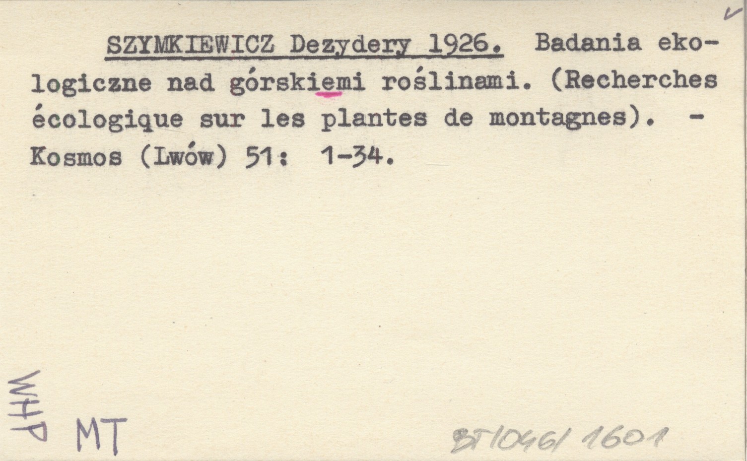 SZYMKIEWICZ Dezydery 1926 Badania ekologiczne nad górskiemi roślinami. (Recherches écologique sur les plantes de montagnes).