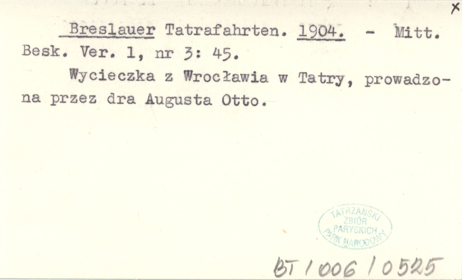 Mitteilungen des Beskidenvereines, 1, nr 3: 45. Wycieczka z Wrocławia w Tatry, prowadzona przez dra Augusta Otto.