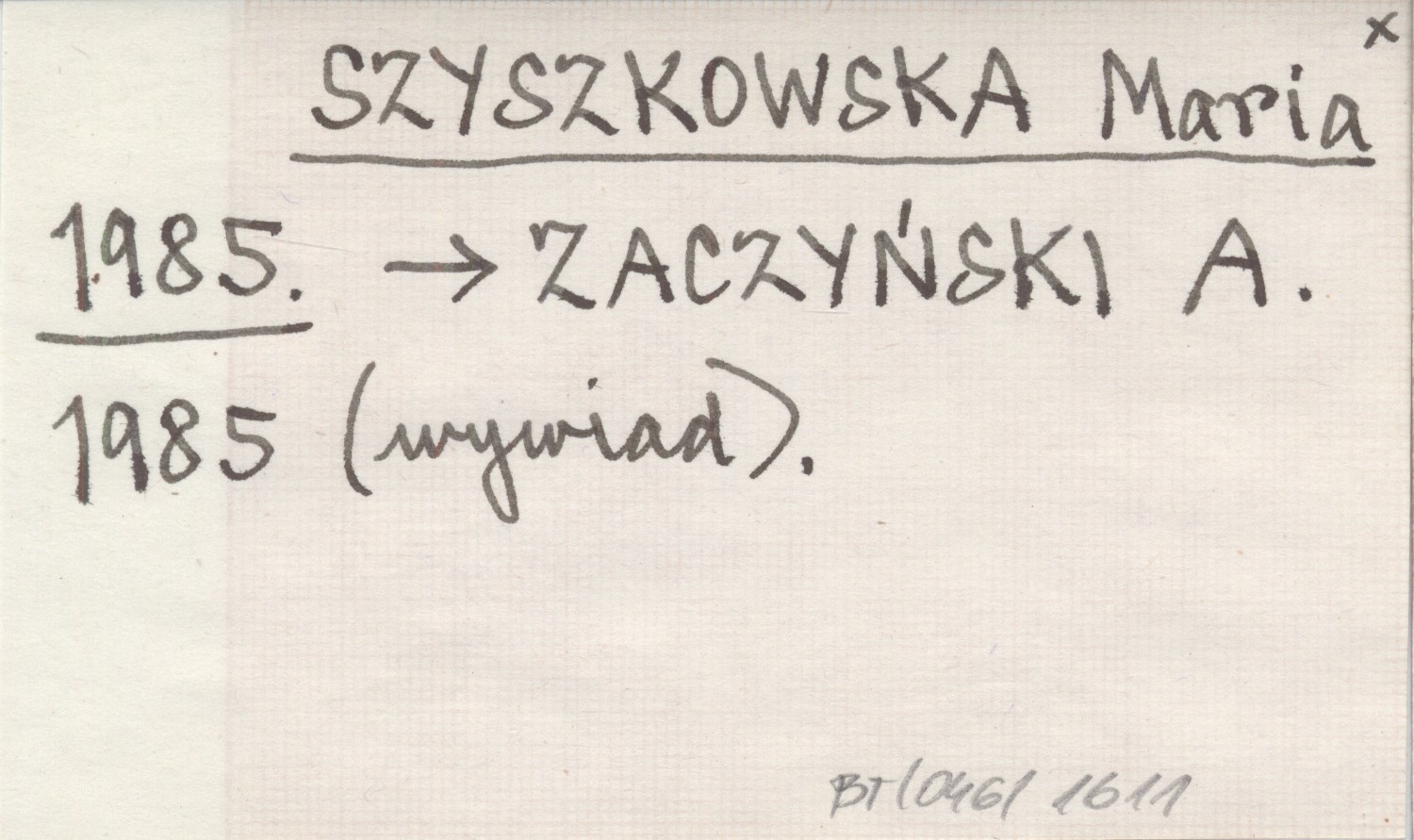 ZACZYŃSKI A. 1985 (wywiad)