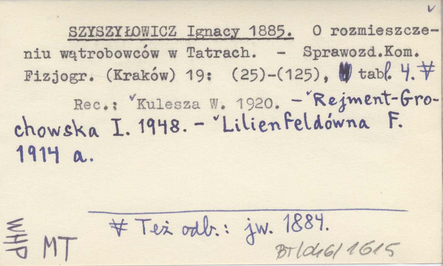 SZYSZYŁOWICZ Ignacy 1885 O rozmieszczeniu wątrobowców w Tatrach.