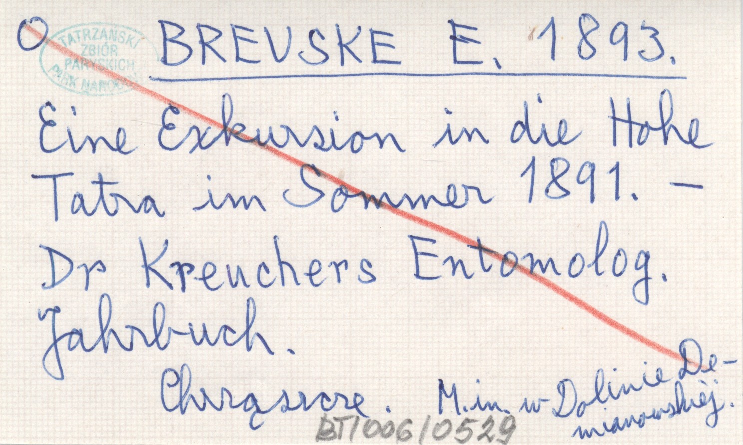 BREUSKE E. 1893 Eine Exkursion in die Hohe Tatra im Sommer 1891.