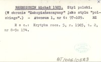 BRENSZTEIN Michał 1903 Styl polski. (W obronie "Zakopiańszczyzny" jako stylu "polskiego".)