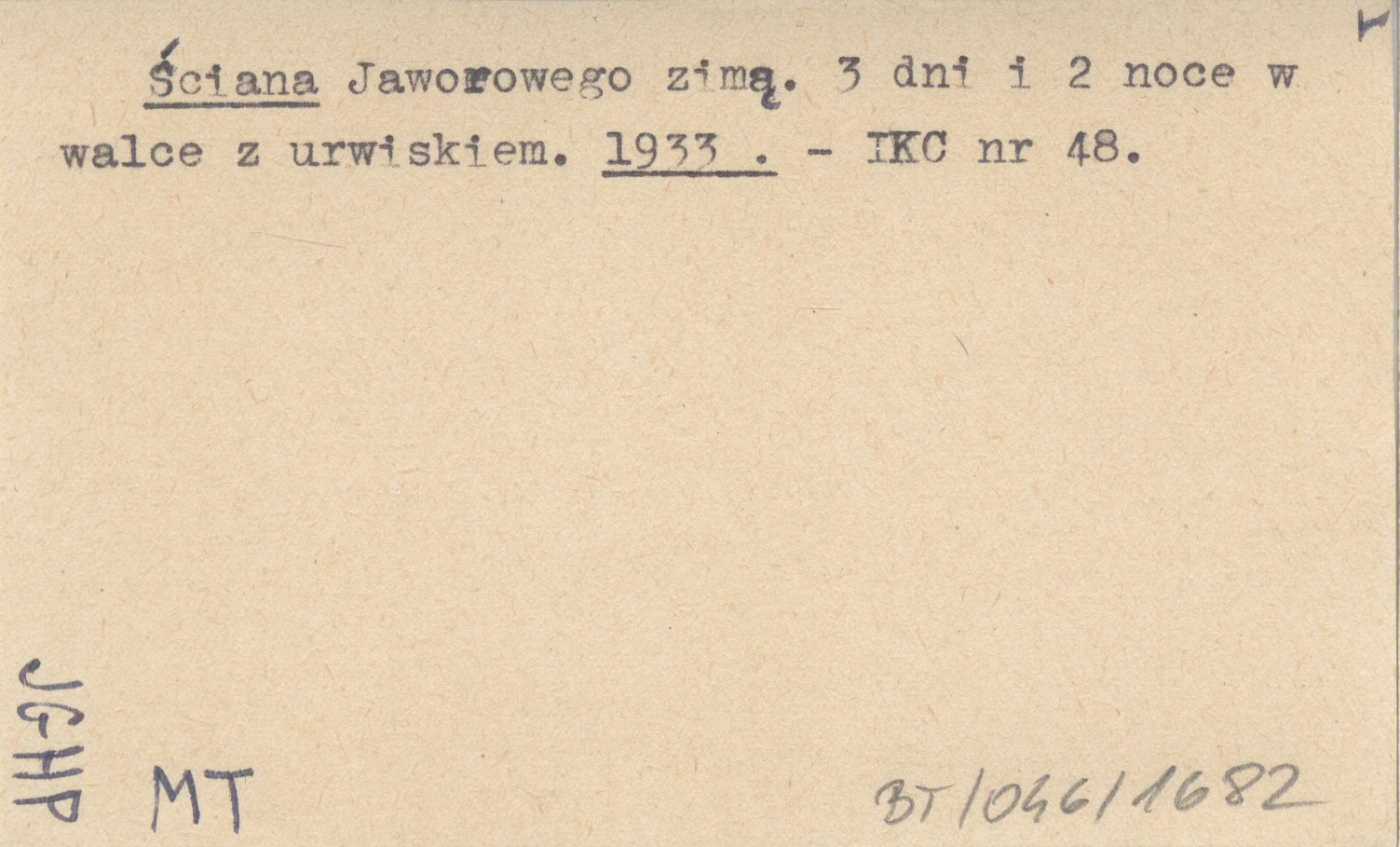 Ściana Jaworowego zimą. 3 dni i 2 noce w walce z urwiskiem. 1933