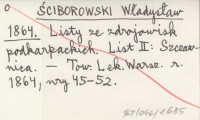 ¦CIBOROWSKI Władysław 1864 Listy ze zdrojowisk podkarpackich. List II: Szczawnica.