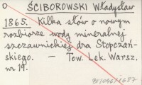 ¦CIBOROWSKI Władysław 1865 Kilka słów o nowym rozbiorze wody mineralnej szczawnickiej dra Stopczańskiego.