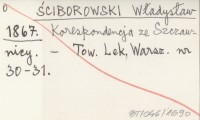 ŚCIBOROWSKI Władysław 1867 Korespondencja ze Szczawnicy.