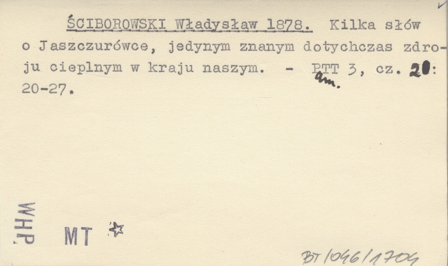ŚCIBOROWSKI Władysław 1878 Kilka słów o Jaszczurówce, jedynym znanym dotychczas zdroju cieplnym w kraju naszym.