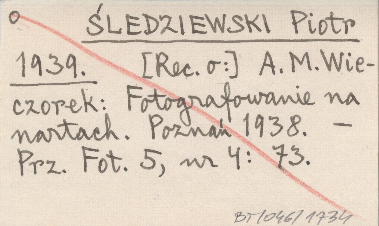 ŚLEDZIEWSKI Piotr 1939 [Rec. o:] A. M. Wieczorek: Fotografowanie na nartach. Poznań 1938.