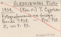 ŚLEDZIEWSKI Piotr 1939 [Rec. o:] T. Cyprian: Fotografowanie na śniegu. Poznań 1938.