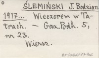 ŚLEMIŃSKI J. Bodzian 1917... Wieczorem w Tatrach.