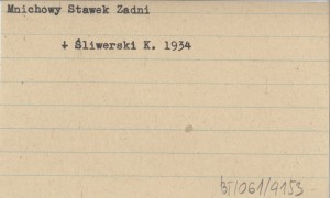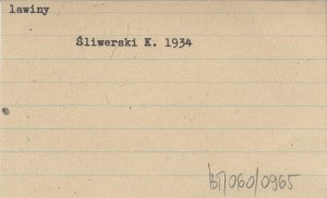 Wiadomości Służby Geograficznej (Warszawa) , 8, nr 3: 387-412, il., 3, 5 k., Rés. Też jako odbitka: ŚLIWERSKI K. 1934 a. REC: MŁODZIEJOWSKI J. 1934 e ; ŚLIWERSKI K. 1935 ; SZAFLARSKI J. 1935, 1936 ;