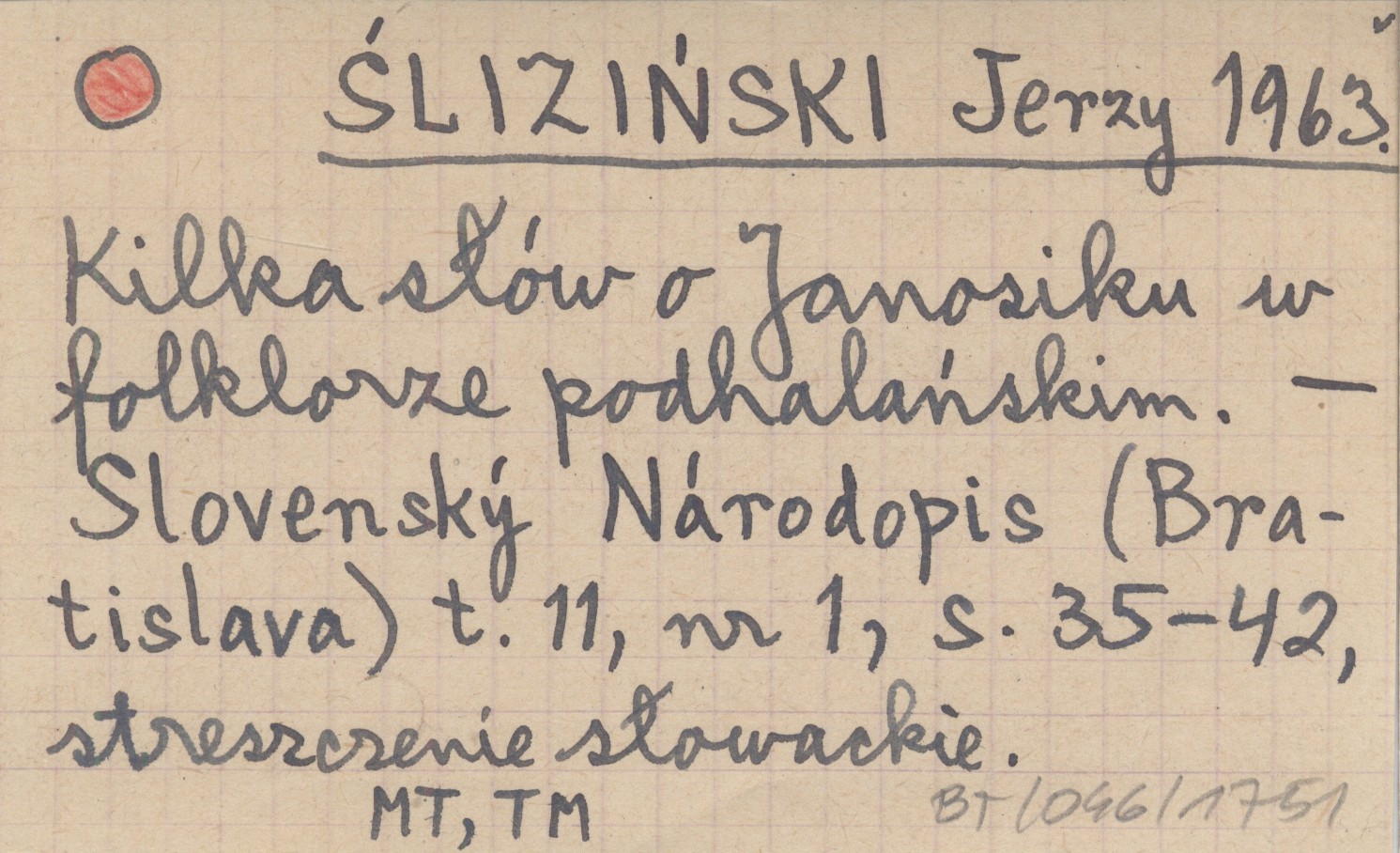 ŚLIZIŃSKI Jerzy 1963 Kilka słów o Janosiku w folklorze podhalańskim.