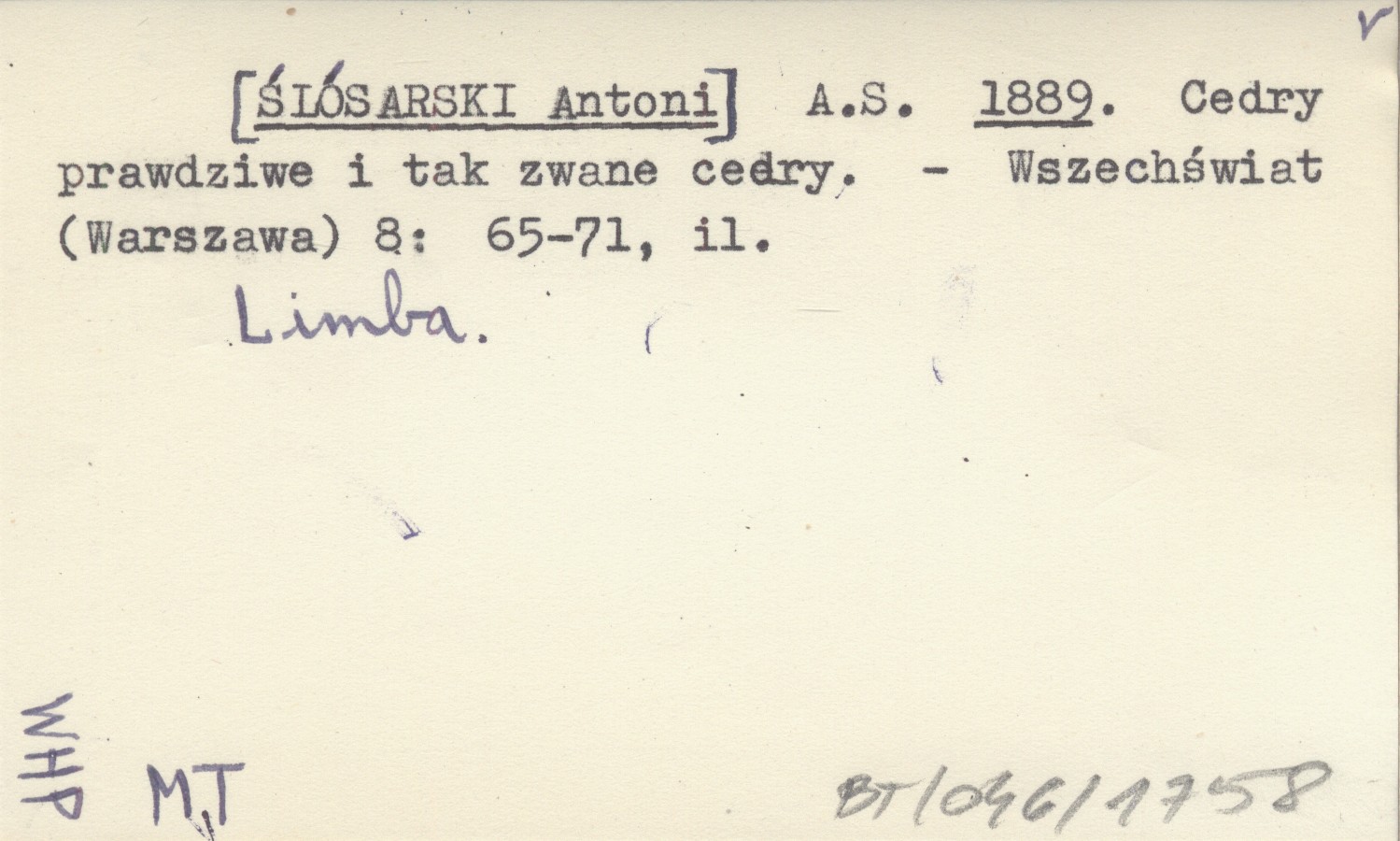 A. S. [ŚLÓSARSKI Antoni] 1889 Cedry prawdziwe i tak zwane cedry.