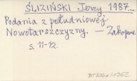 ŚLIZIŃSKI Jerzy 1987... Podania z południowej Nowotarszczyzny.