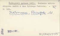 ŚLÓSARSKI Antoni 1879 Badania mikroskopowe mułów z dna Rybiego Jeziora.