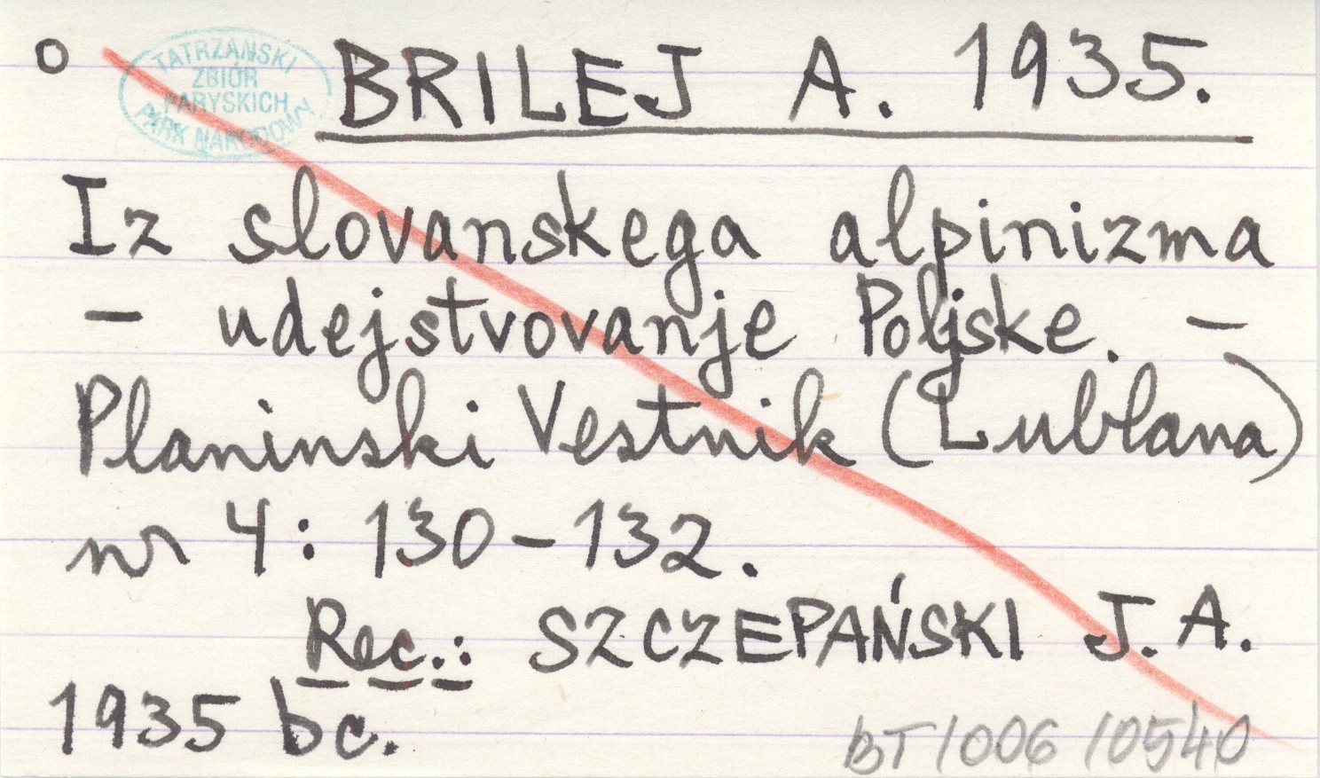 Planinski Vestnik (Lublana) , Nr 4: 130-132. REC: SZCZEPAŃSKI J. A. 1935 bc